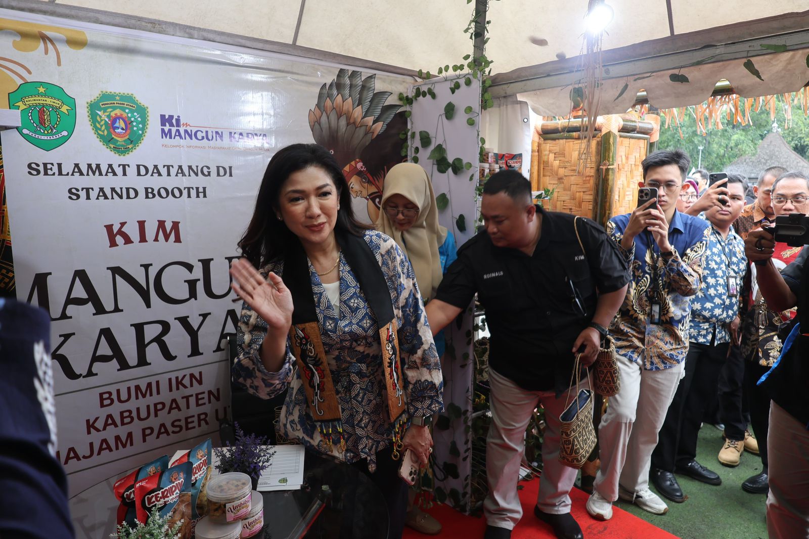 Tak ketinggalan, rangkaian produk UMKM Desa Bangun Mulya ikut dipromosikan. “Ini Batik Sekar Buen, motifnya terinspirasi dari flora khas hutan Paser,” ujar salah satu anggota KIM saat memperkenalkan produk kepada pengunjung.