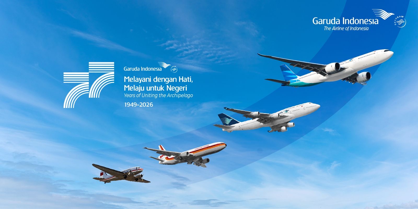 Memasuki usia ke-77 pada 26 Januari 2026, Garuda Indonesia menatap masa depan dengan semangat pembaruan. Digitalisasi layanan, efisiensi armada, dan komitmen keberlanjutan menjadi bahan bakar untuk terus melaju. Di setiap penerbangan, Garuda membawa wajah Indonesia ramah, beragam, dan berkelas.
